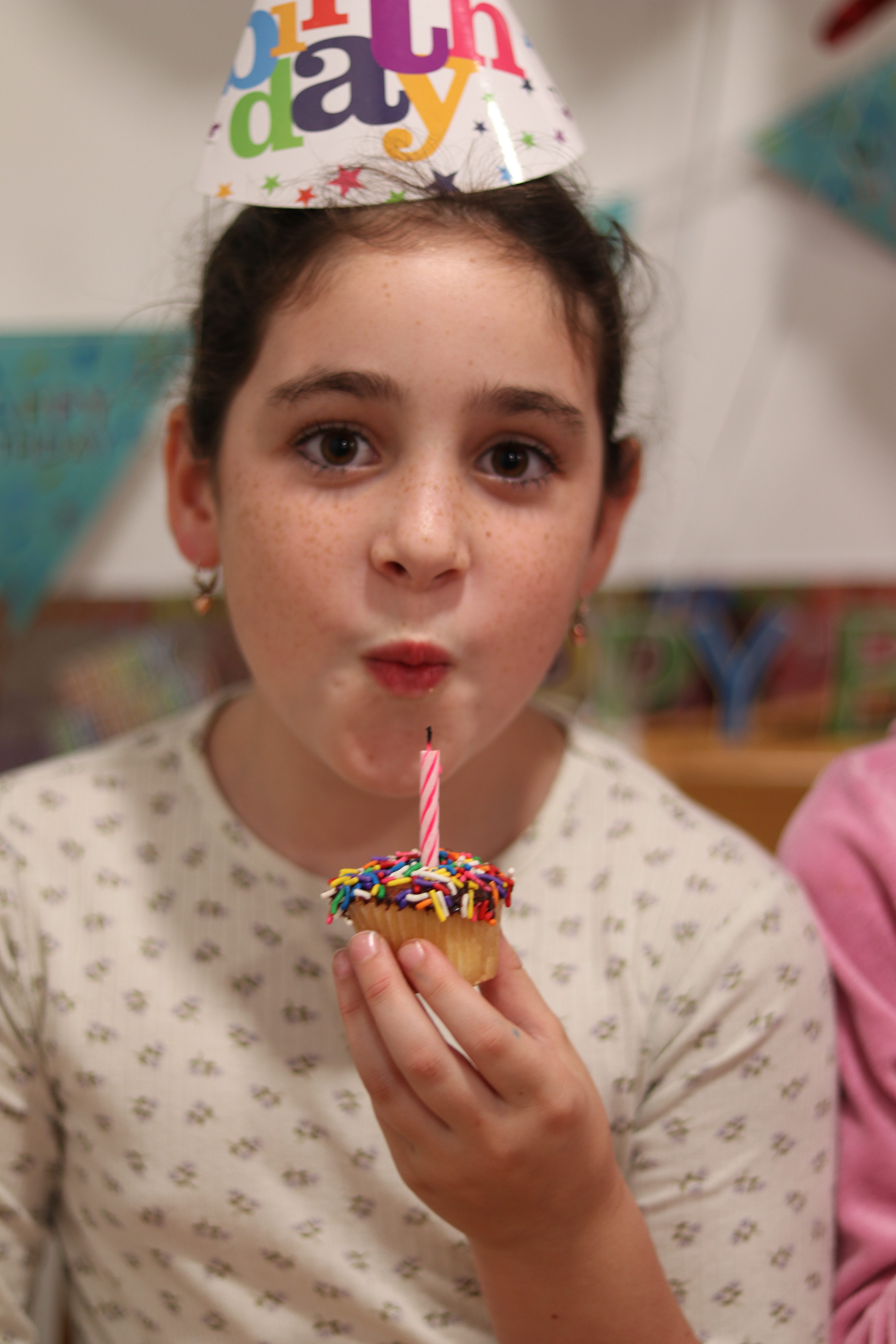 Birthday Girl Wishing and Blowing Out a Candle on a Sprinkle Cupcake