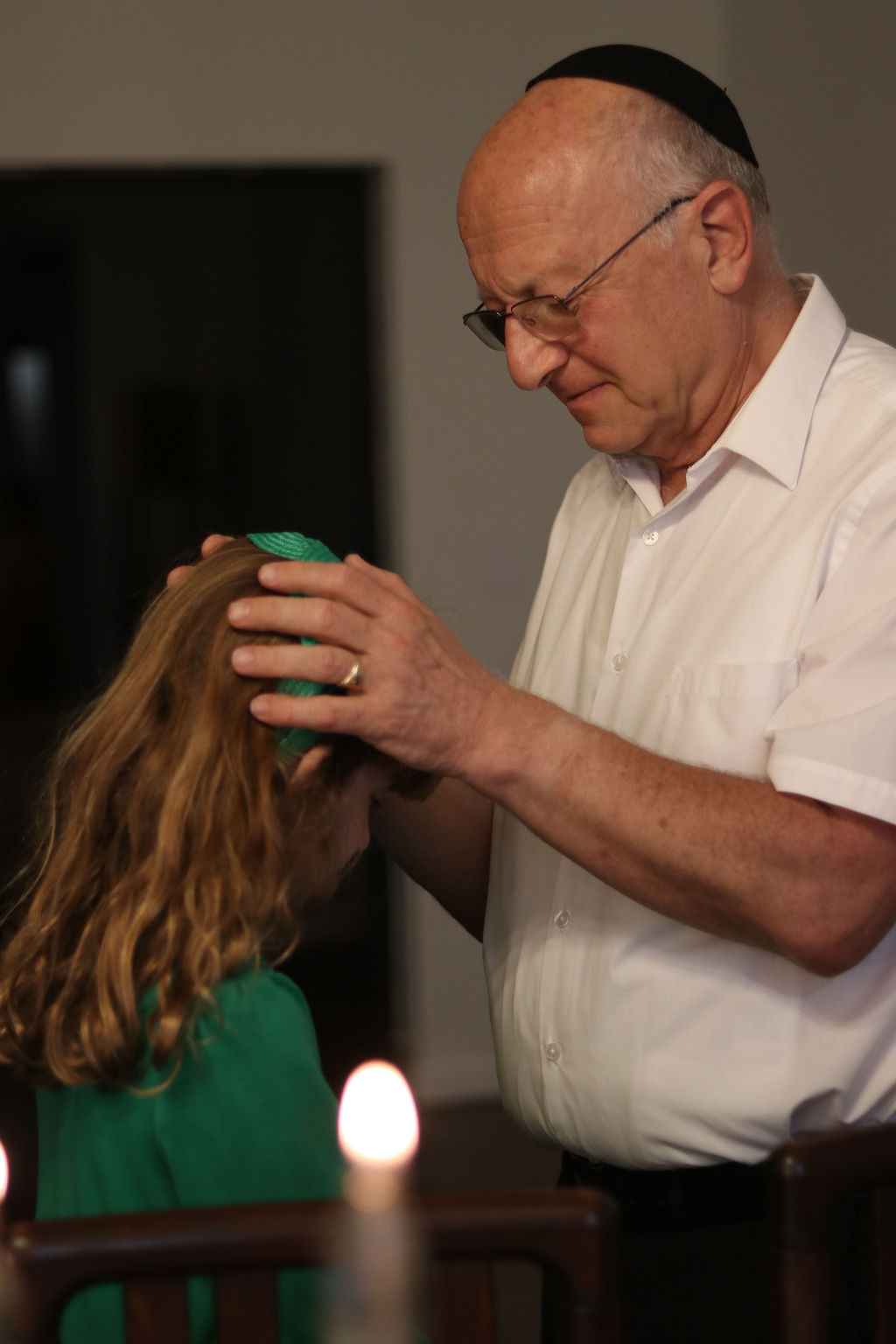Close-Up Photo of an Elderly Man and Young Girl During a Blessing and Prayer Ceremony
