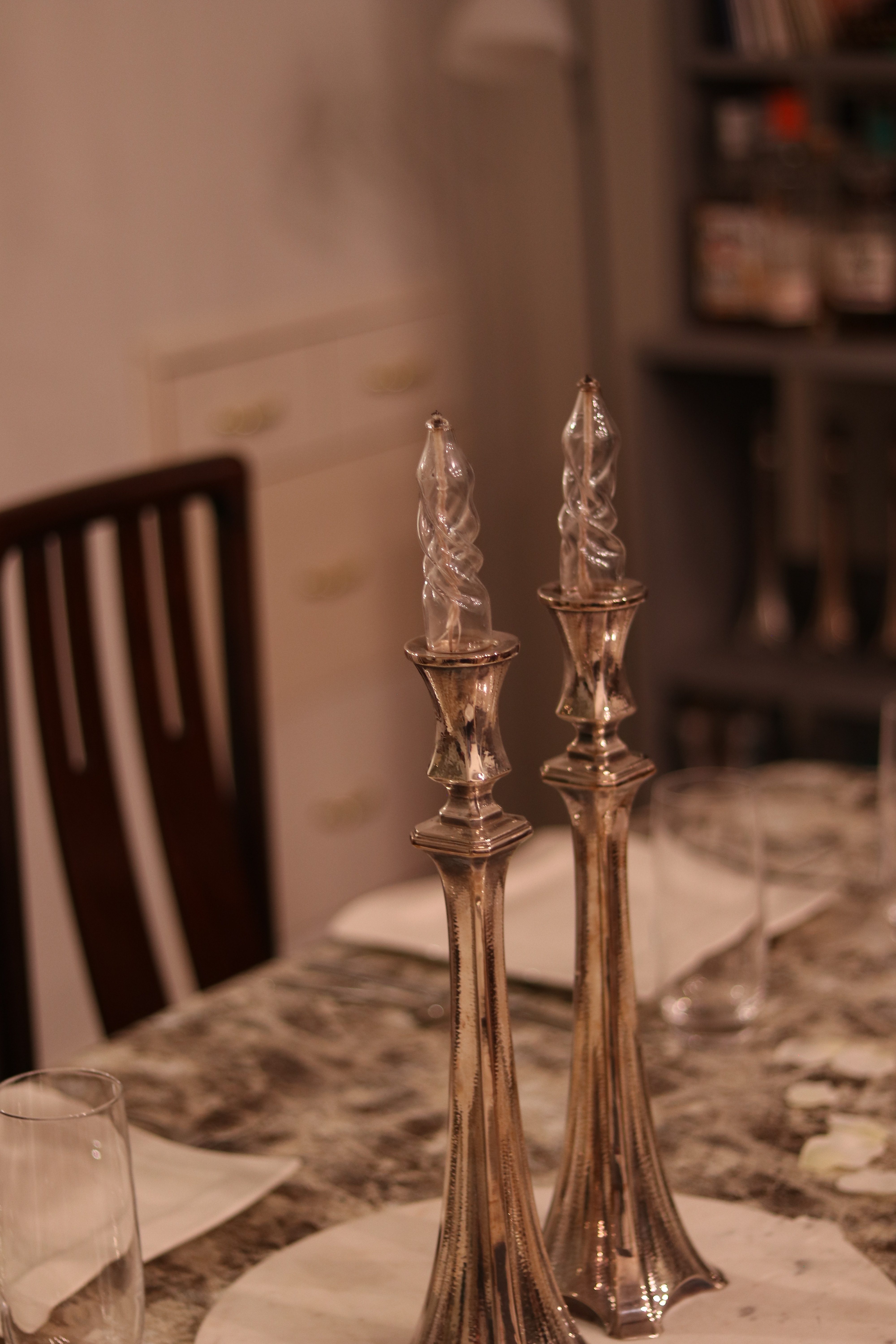 Decorative Candlesticks with Twisted Candles in a Home Dining Room