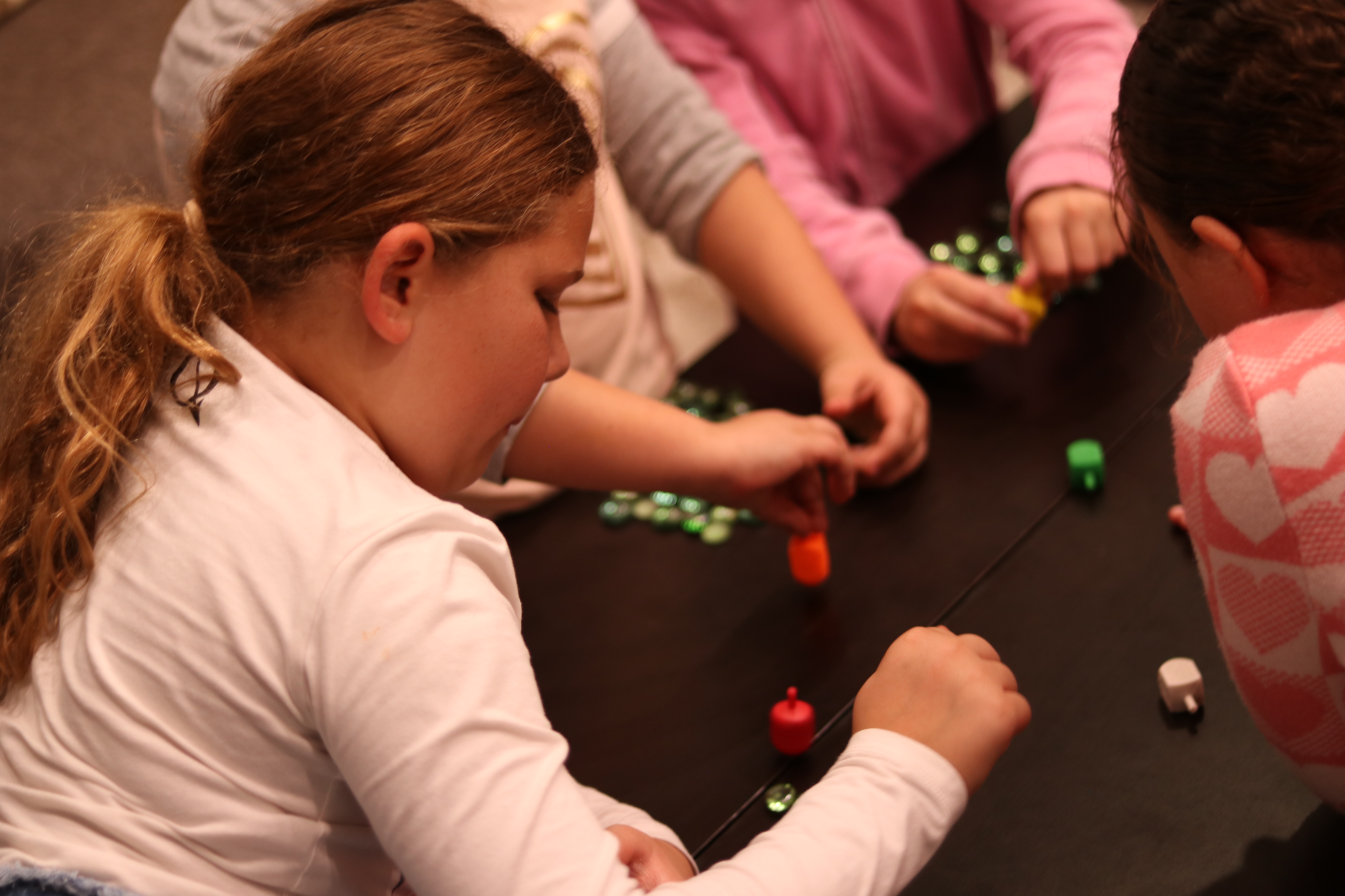 Young Girl Playing the Dreidel Game with Friends