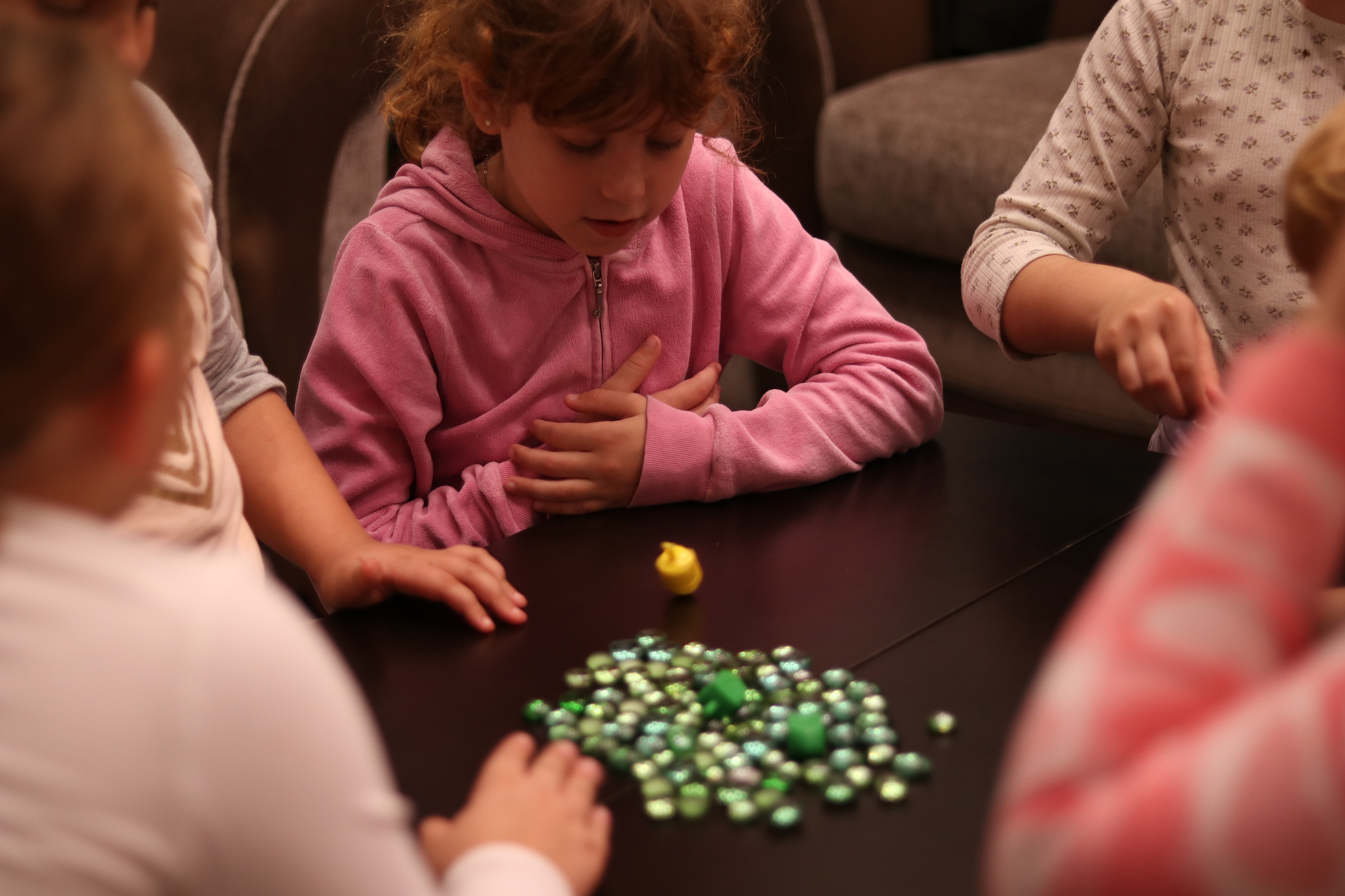 Young Girls Playing the Dreidel Game Together